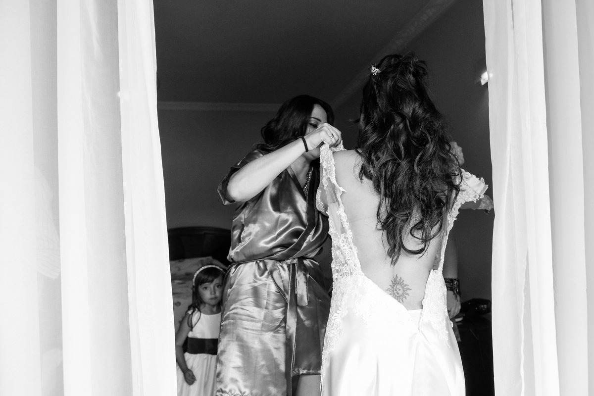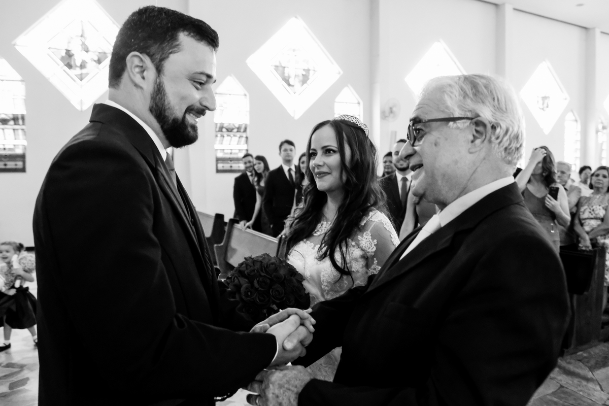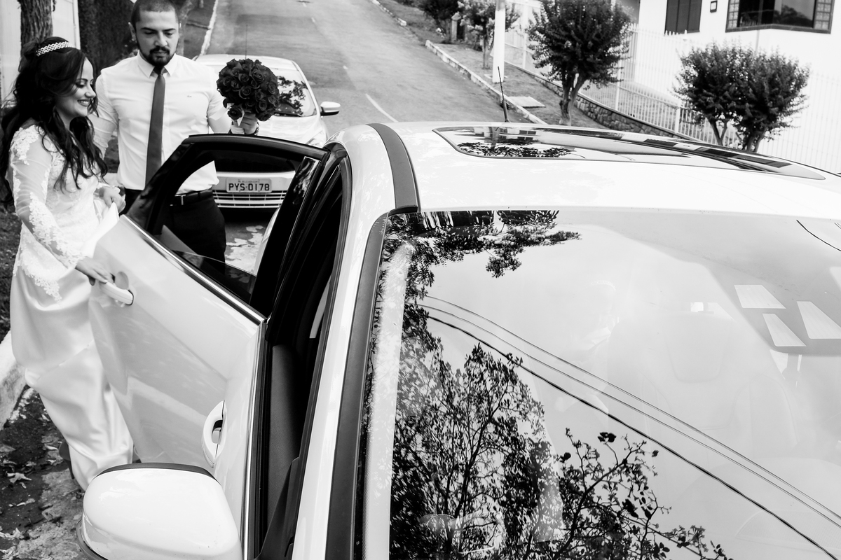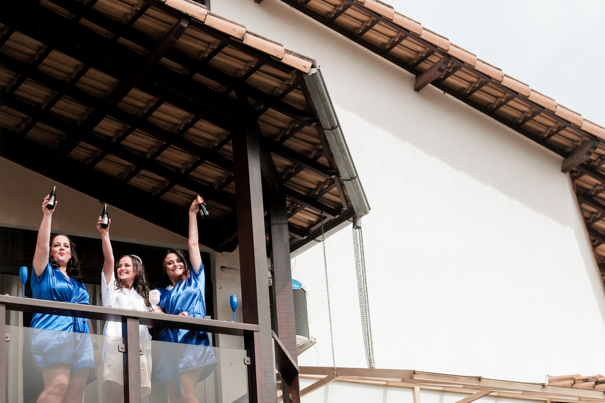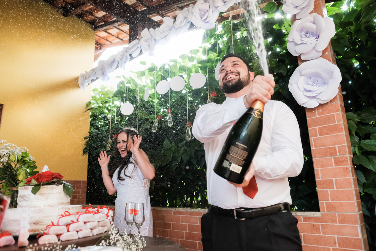 Para ela o dia começou muito cedo, de madrugada, ás seis da manha já estava indo se arrumar. Para ele também, afinal, ele acordou junto para leva-lá. Ele foi se arrumar com os primos, amigos e o irmão. Claro, não poderia faltar boas risadas, e aquela cerveja especial, que esse dia merece. Ela não ficou só na maquiagem e água, também teve champanhe e muitas, muitas risadas e cumplicidade. Ele ansioso em ver ela entrando pela igreja. Ela nervosa para saber se tudo ocorreria bem.